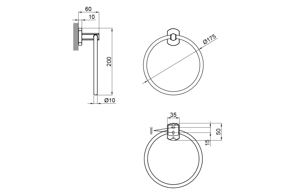Тримач для рушників Qtap Liberty BLM 1160 у формі кільця виконаний з латуні з чорною матовою поверхнею, яка легко миється й не піддається корозії. Прихований монтаж не порушує дизайну ванної кімнати та не псує обробку.