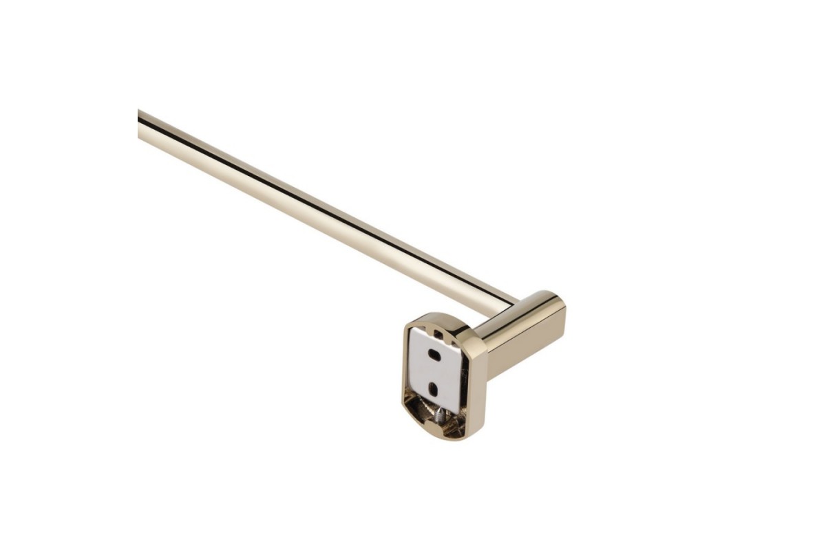 Тримач для рушників Qtap Liberty ORO 1124 виконаний з латуні з золотою глянцевою поверхнею, яка легко миється та не піддається корозії. Тримач складається з кріплення й стержня довжиною 610 мм, що дозволяє розмістити відразу два рушники або один банний. Прихований монтаж не порушує дизайну ванної кімнати й не псує обробку. На тримач нанесено фірмовий логотип виробника.