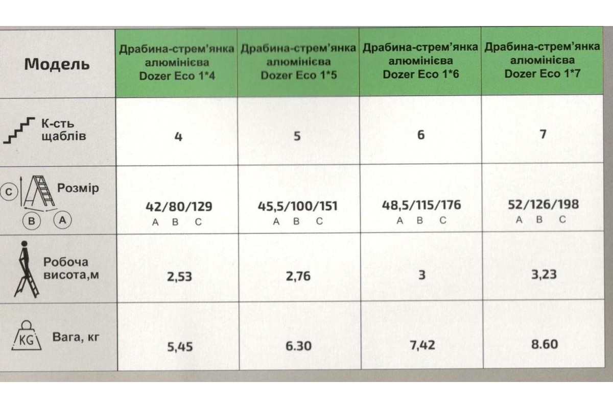 Драбина-стрем’янка алюмінієва Dozer Eco 1*5