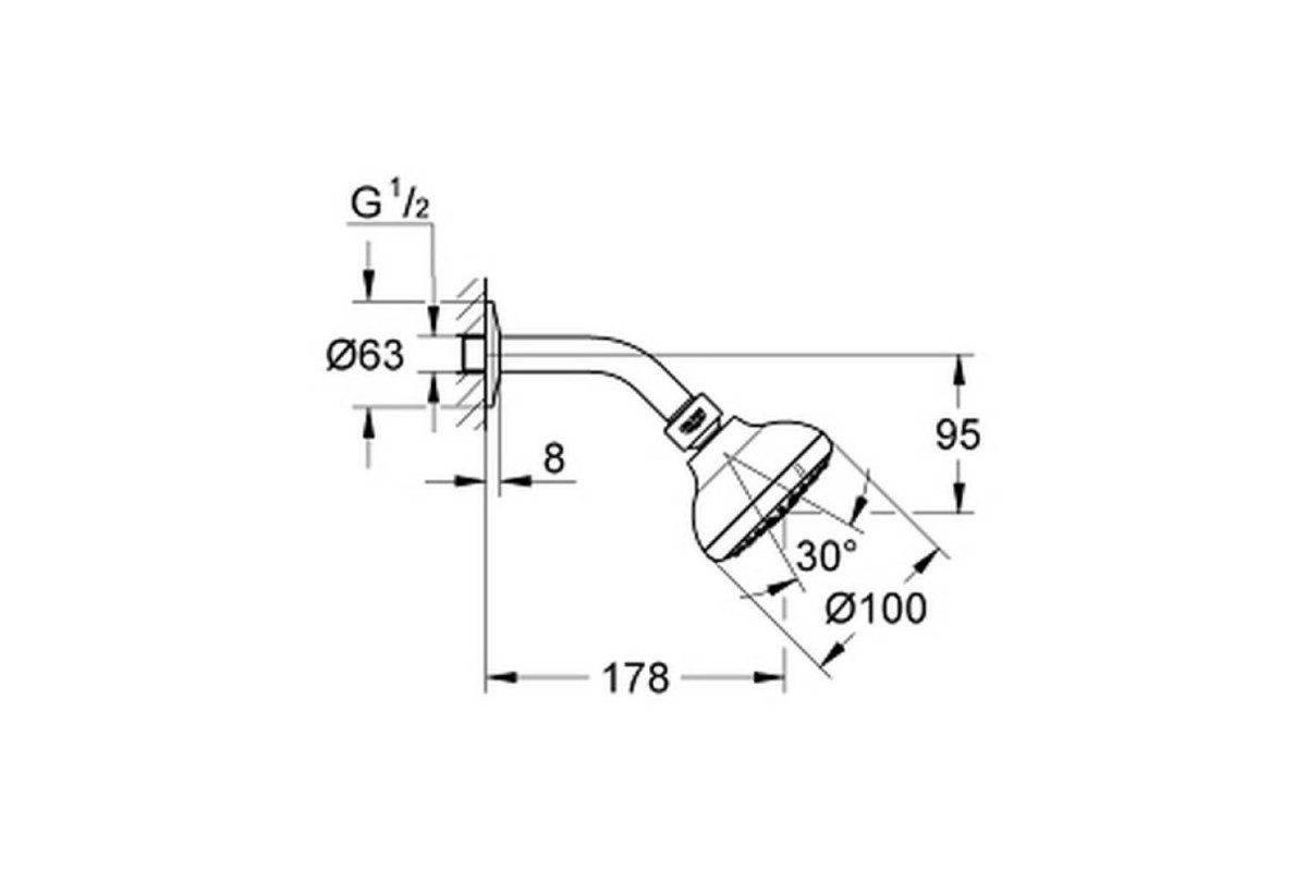 GROHE Rain O2, Rain, Massage душевая головка диаметром 100 мм крутящийся шаровый шарнир 15 ° душевой кронштейн