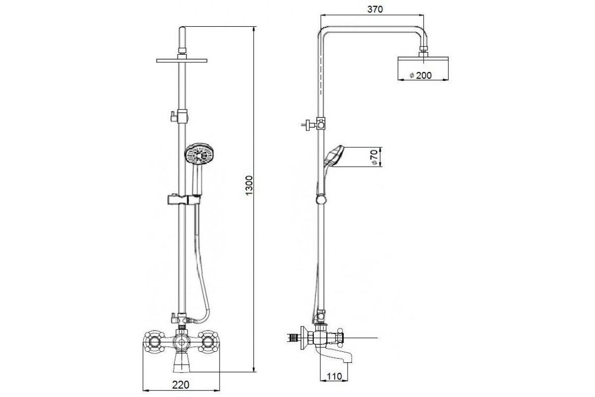 Ручная лейка. Верхний душ. Держатель для душа. Кронштейн. Душевая штанга. Шланг душевой