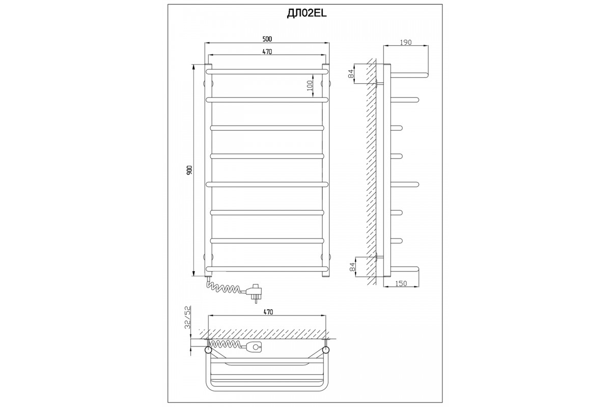 Діаметр: стійка Ø30, товщина 1.5 мм; перемичка Ø20, товщина 1.5 мм. Максимальна робоча температура 50-60 °C, Споживча Потужність, 140 Вт.
