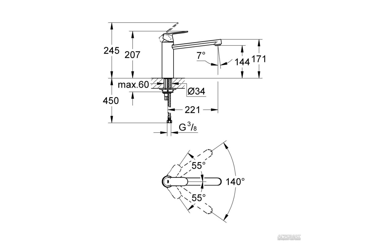 Смеситель Grohe Eurosmart Cosmopolitan 30193000