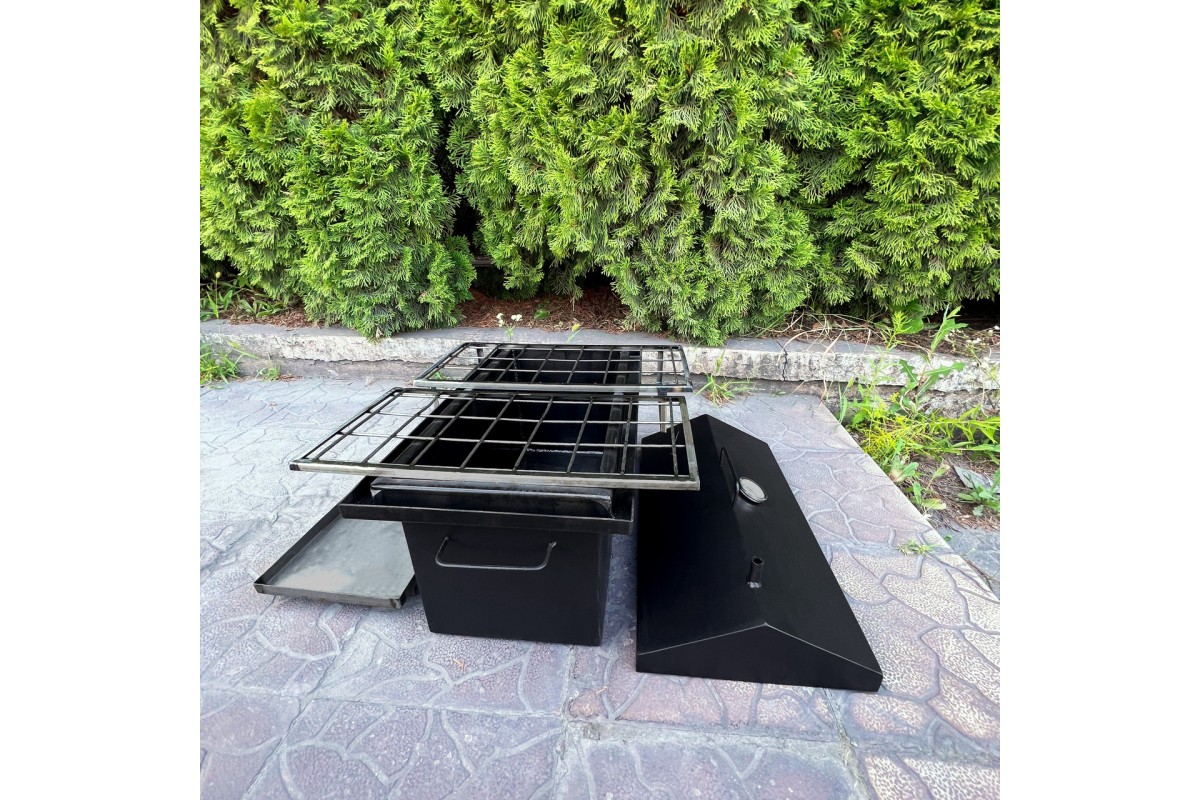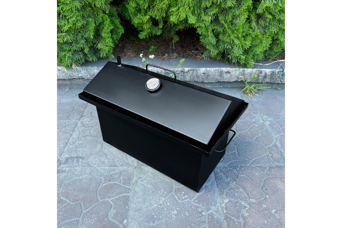 Поглибіться в світ кулінарних шедеврів за допомогою нашої високоякісної Коптильні з гідрозатвором та термометром, яка перетворить процес готування їжі в справжнє мистецтво!Цей пристрій масового виробництва виготовлений із сертифікованої сталі товщиною 2 мм за допомогою передової технології лазерного різання, що гарантує його неперевершену якість та довговічність.Однією з ключових переваг нашої коптильні є гідрозатвор, який ефективно утримує дим та дозволяє точно контролювати процес копчення. Смакуйте ніжне та ароматне м'ясо чи рибу, готовані з використанням нашої коптильні.Коптильня обладнана двома рівнями - зварними сталевими решітками на міцних ніжках, що дозволяє готувати більше продуктів одночасно, економлячи час та зусилля. Піддон з ручкою та полозами для розміщення тріски допомагає збирати жир та надлишки у спеціальному резервуарі, спрощуючи процес чищення після використання.Крім того, у наших нових коптильнях внутрішній простір кришки-будиночка на всю його довжину оснащений сталевим прутом для підвішування їжі, такої як риба, куряча грудка, ніжки чи крильця. В комплект входять 6 гачків. Кришка та нижня прямокутна частина коптильні мають зручні ручки.Наша коптильня виготовлена з нетоксичних матеріалів, що не взаємодіють з їжею та не видаляють шкідливих речовин. Крім того, вона поставляється змащеною всередині лляною олією, що гарантує антипригарні та антикорозійні властивості, а зовні покрита чорною термостійкою емаллю, що має високий ступінь захисту від температурних впливів до 800°C.Усі зварні шви в конструкції коптильні виконані без тріщин, усадкових раковин, пропалів та непроварів. Місця зварювання на зовнішніх поверхнях оброблені.Товар ретельно упаковується в гофрокартон та стретч-плівку за наш рахунок.Не втрачайте шанс стати справжнім кулінаром за допомогою нашої високоякісної Коптильні з гідрозатвором та термометром.Комплектація: 1. Нижня прямокутна частина з гідрозатвором - 1шт.2. Кришка - 1 шт.3. Грати на ніжках - 2 шт.4. Піддон - 1 шт.5. Гачки для підвішування їжі - 6 шт.ХарактеристикиГабаритні розміри коптильні з ручкою: 496х276х303 ммРозмір коптильні: 496х276х272 ммОб'єм коптильні: 27.3 лРозмір нижньої частини: 420х200х200 ммОб'єм нижньої частини: 16.8 лТовщина металу: 2 ммВага: 11.3 кг