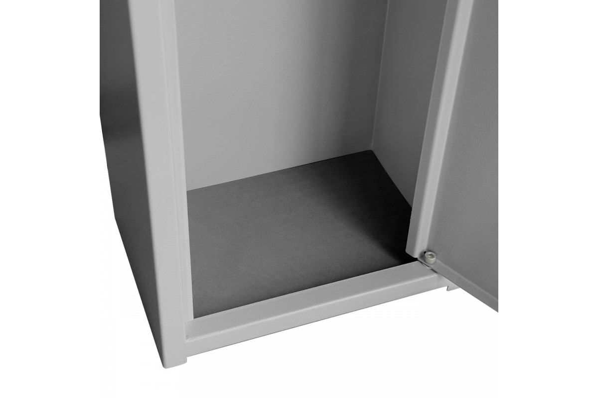 Сейф призначений для унікального зберігання двох одиниць вогнепальної зброї до 1220 мм заввишки і відповідає високим стандартам дозвільної системи. Оснащений замком сувальдного типу, сейф передбачає можливість кріплення до підлоги та володіє відсіком для організованого зберігання патронів.Конструкція корпусу складається з листової сталі, що має товщину 1,2 мм для корпусу, 1,5 мм для дверної плити та 2,0 мм для відсіку під патрони. Посилений дверний отвір та втоплені дверцята підвищують надійність сейфа. Порошкове фарбування, яке відбувається при 180 °C, не лише надає сейфу приємний зовнішній вигляд, але й ефективно захищає його від корозії.Надійний ключовий замок сувальдного типу (Титан/FZB/Barrero) із трьома ригелями діаметром по 10 мм забезпечить захист ваших документів та цінностей від неповідомлених осіб. У сейфі розміщене касове відділення, яке можна замкнути за допомогою замка Euro-lock з секретністю, включаючи 2000 комбінацій.Габаритні розміриГлибина 20 смШирина 28 смВисота 125 смВага 18 кгГарантія 5 років і 12 місяців на замок