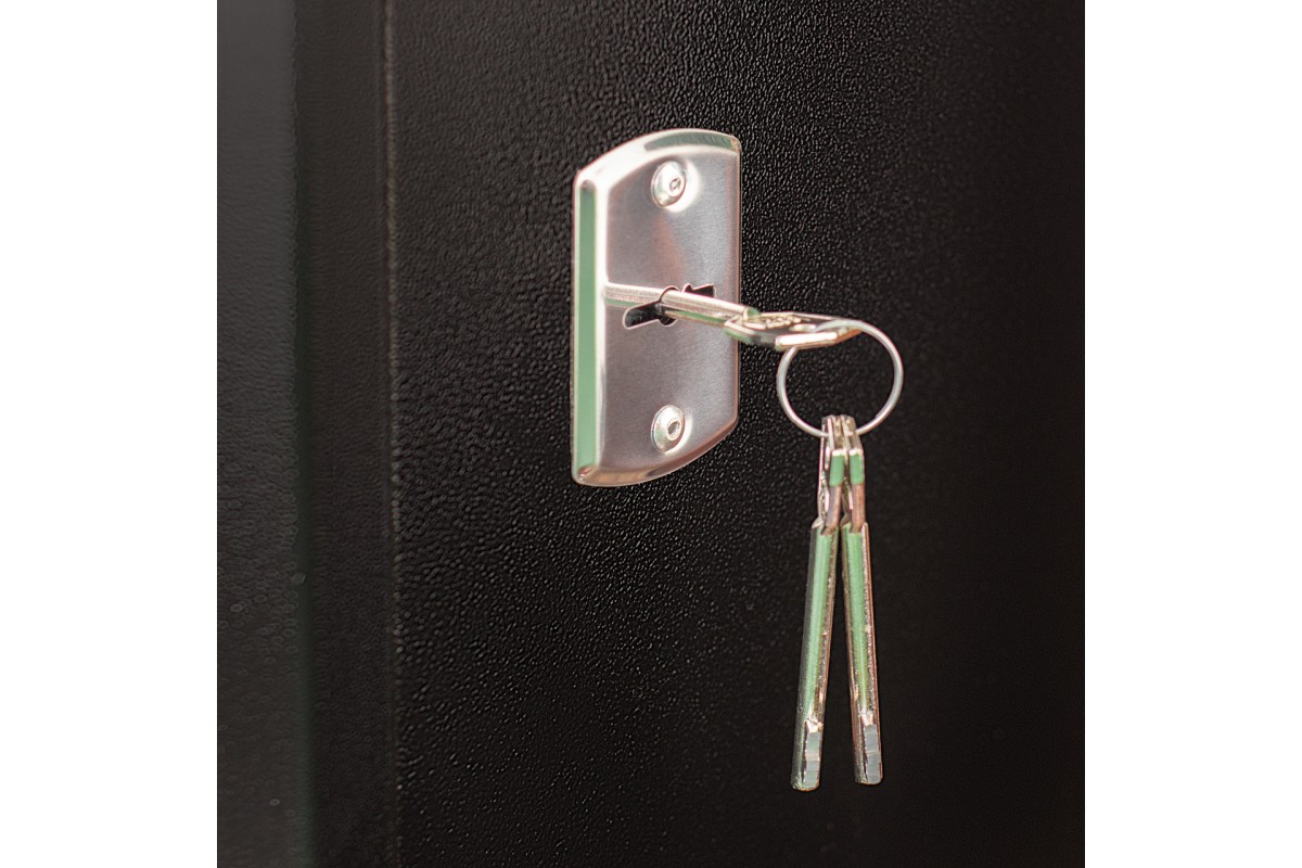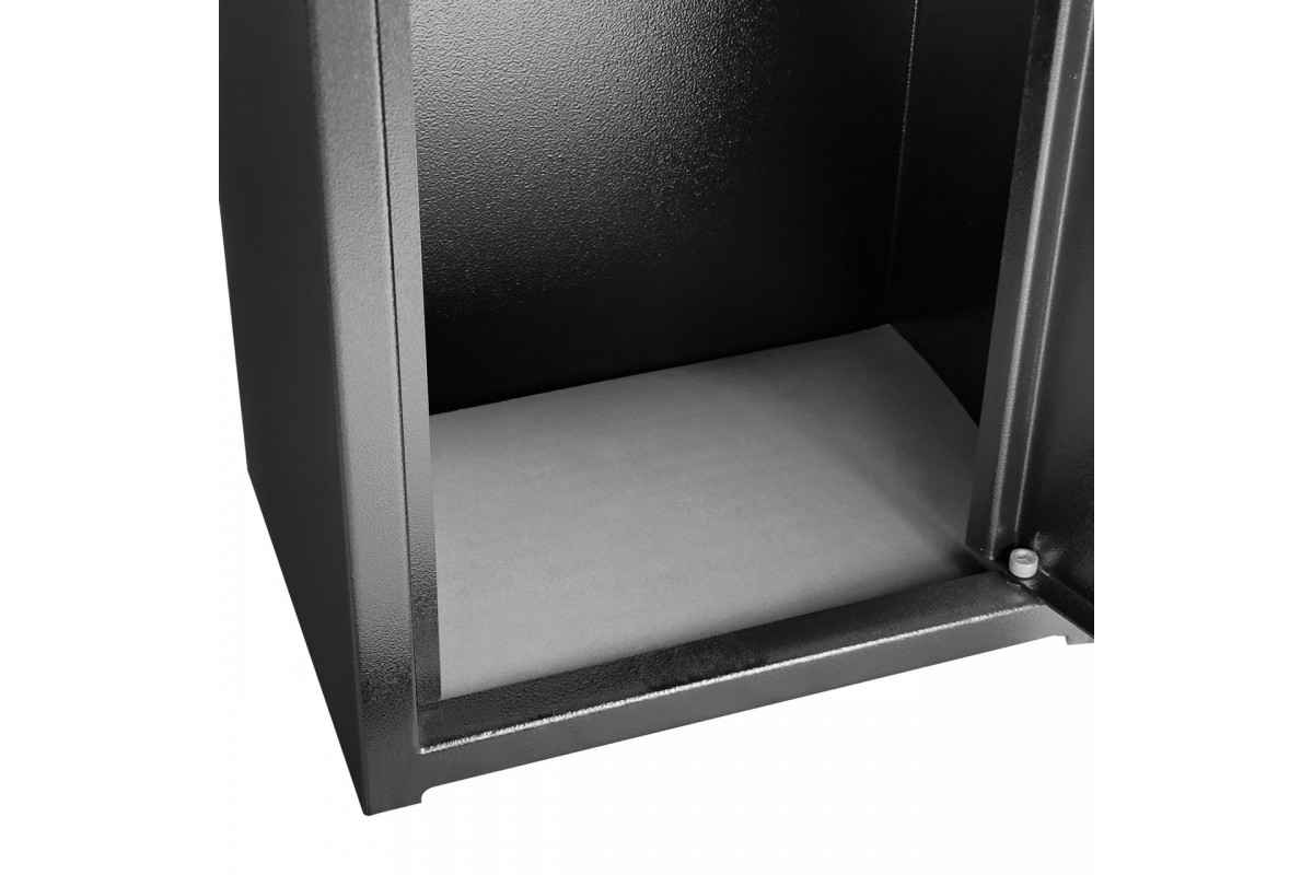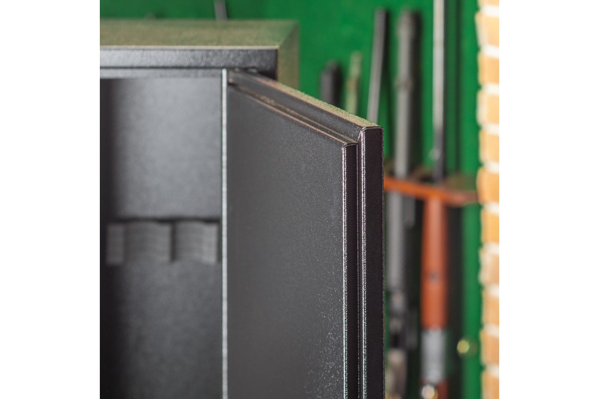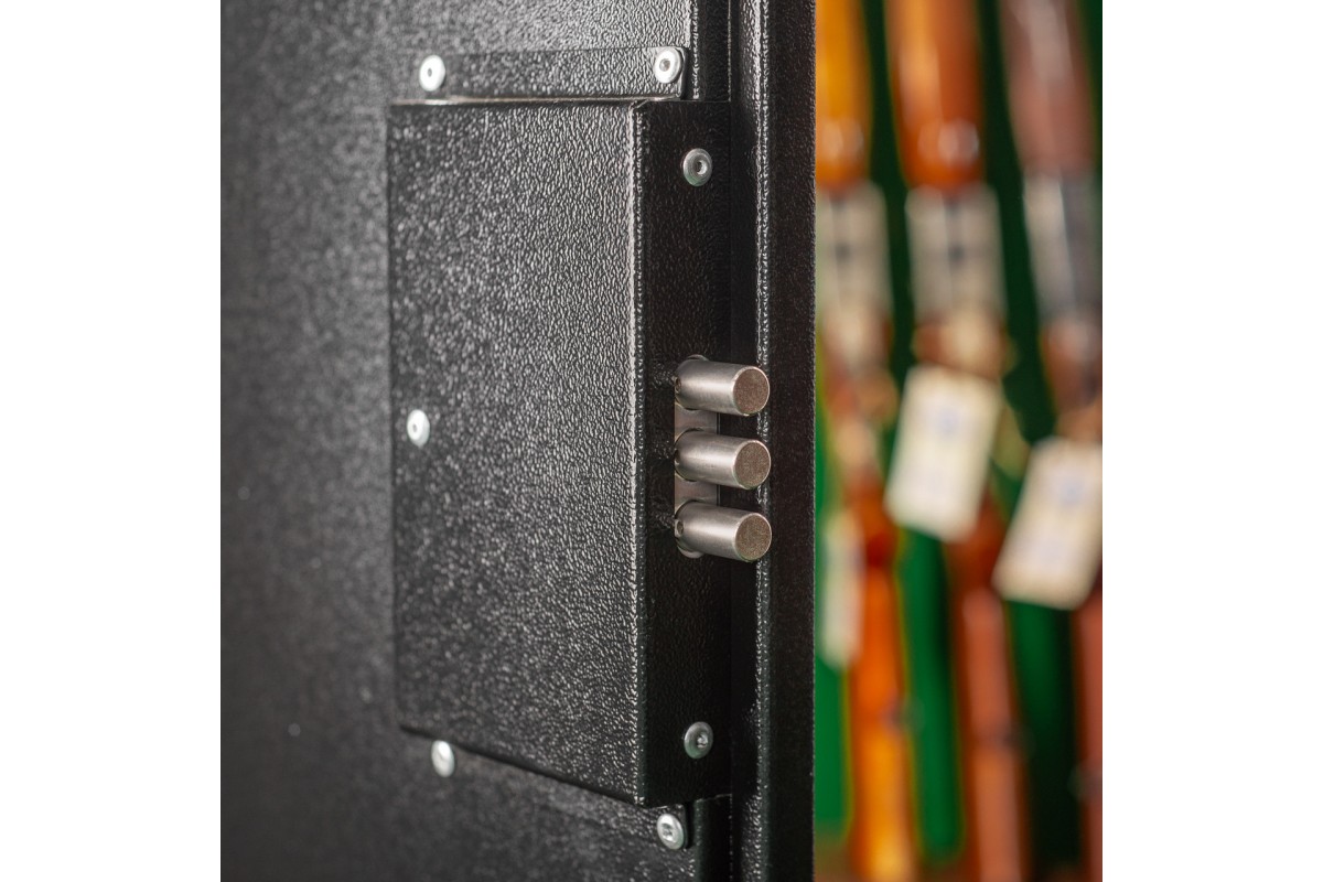 Сейф призначений для зберігання трьох вогнепальних збройових одиниць заввишки до 1370 мм, а також для патронів та додаткових аксесуарів.Він відповідає вимогам дозвільної системи: оснащений замком сувальдного типу, передбачена можливість кріплення до підлоги, та має відсік для зберігання патронів.Конструкція корпусу виготовлена зі сталі: товщина корпусу - 1,2 мм, дверна плита - 1,2 мм, а відсік для патронів - 2,0 мм. Внутрішня частина дверей закрита фальшпанеллю. Втоплені дверцята підвищують надійність сейфу, а дверний отвір посилений.Зовнішній вигляд збройного сейфу із фальшпанеллю ШОЛ-1370 підкреслюється порошковим фарбуванням, яке надає йому приємний вигляд та захищає від корозії. Колір - чорний RAL9005.Внутрішній простір сейфу поділений на дві зони: одна призначена для зберігання зброї, інша - для полиць і відділення під патрони.Для захисту ваших документів чи цінностей використовується надійний ключовий замок сувальдного типу від фірми (Титан/FZB/Barrero) з трьома ригелями діаметром 10 мм. Сейф також оснащений касовим відділенням, яке закривається замком Euro-lock, і має 2000 комбінацій для додаткової секретності.Габаритні розмірГлибина 30 смШирина 40 смВисота 140 смВага 32 кгГарантія 5 років і 12 місяців на замок