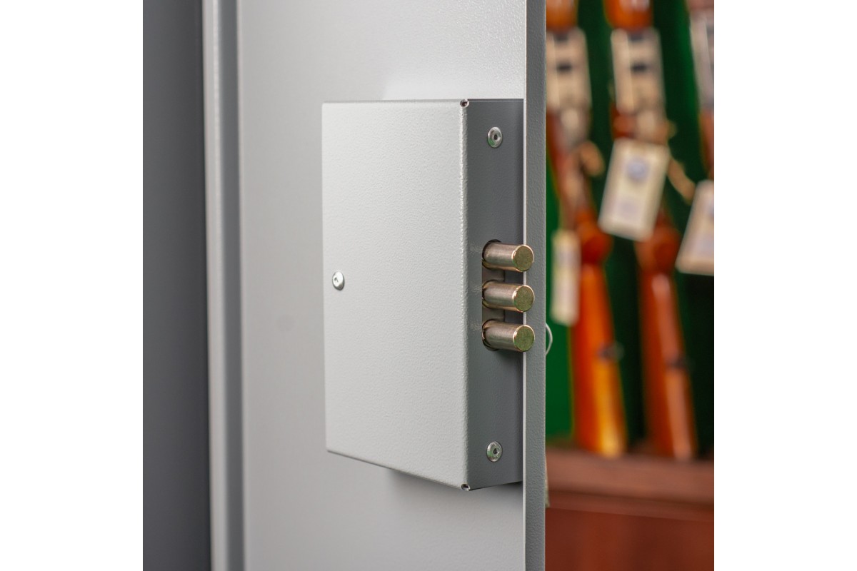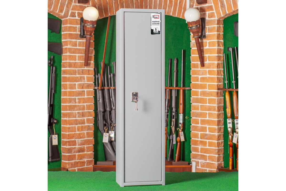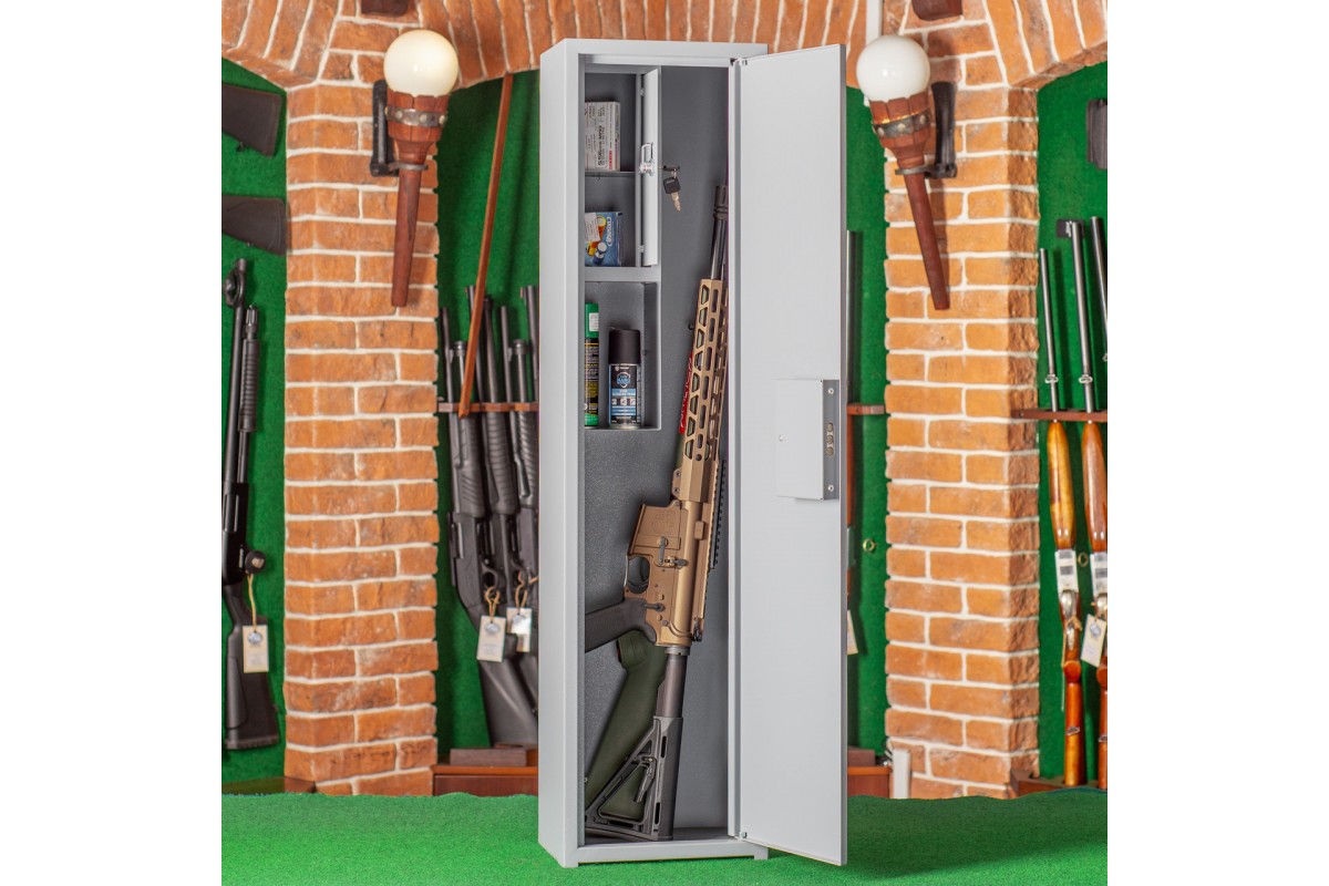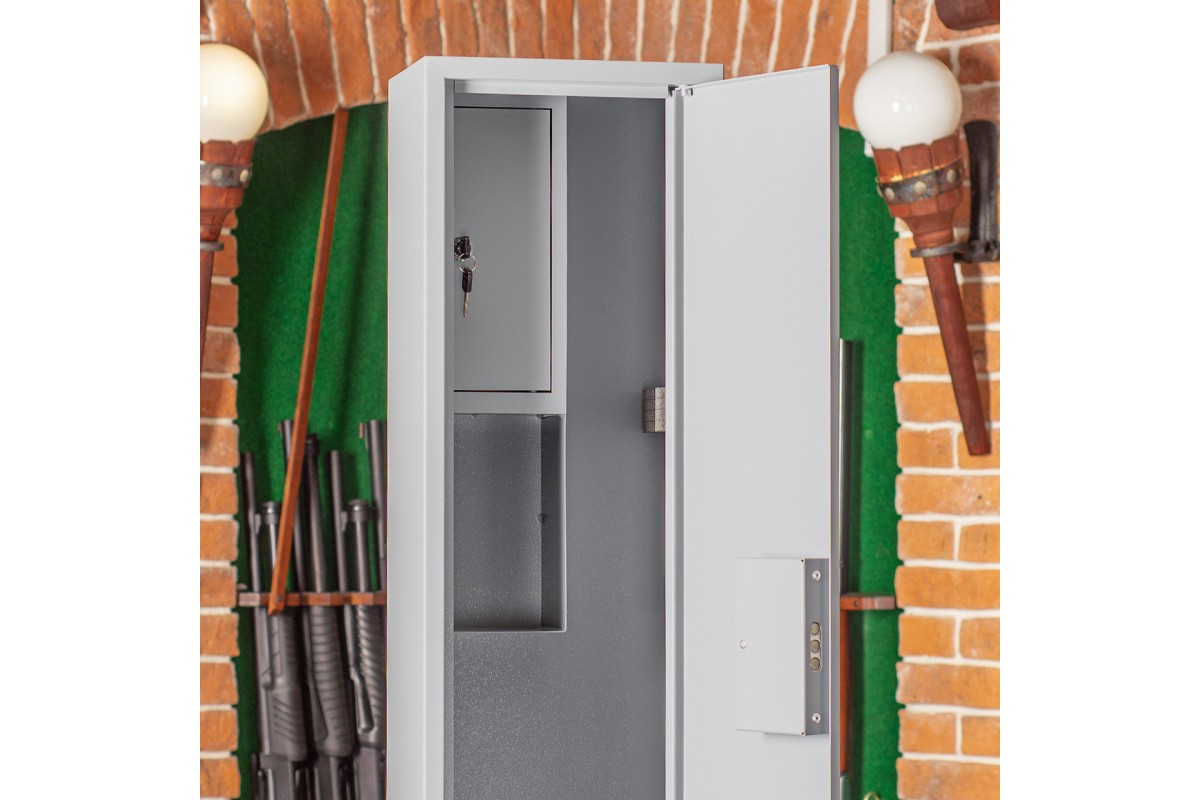 Сейф розроблено для безпечного зберігання двох одиниць вогнепальної зброї до 1070 мм заввишки та відповідає вимогам дозвільної системи. Він оснащений сувальдним замком, має можливість кріплення до підлоги, а також відсік для патронів.Конструкція корпусу складається зі сталевого листу товщиною 1,2 мм для корпусу, 1,5 мм для дверної плити та 2,0 мм для відсіку під патрони. Дверний отвір додатково посилено, а дверцята сейфа втоплені, що підвищує його надійність.Сейф має 5-річну офіційну гарантію від виробника на конструкцію та 12-місячну гарантію на замок. Протягом 14 днів ви маєте можливість обміняти або повернути товар.Порошкове фарбування, яке застосовується при температурі 180 °C, не лише надає сейфу приємний зовнішній вигляд, а й забезпечує надійний захист від корозії.Надійний ключовий сувальдний замок (Титан/FZB/Barrero) з трьома ригелями діаметром 10 мм гарантує захист вашої документації та цінностей від сторонніх. Крім того, сейф в оснащений касовим відділенням, яке можна замкнути за допомогою Euro-lock із 2000 можливих комбінацій для додаткового рівня конфіденційності.Габаритні розміриГлибина 20 смШирина 28 смВисота 110 смВага 17 кгГарантія 5 років і 12 місяців на замок