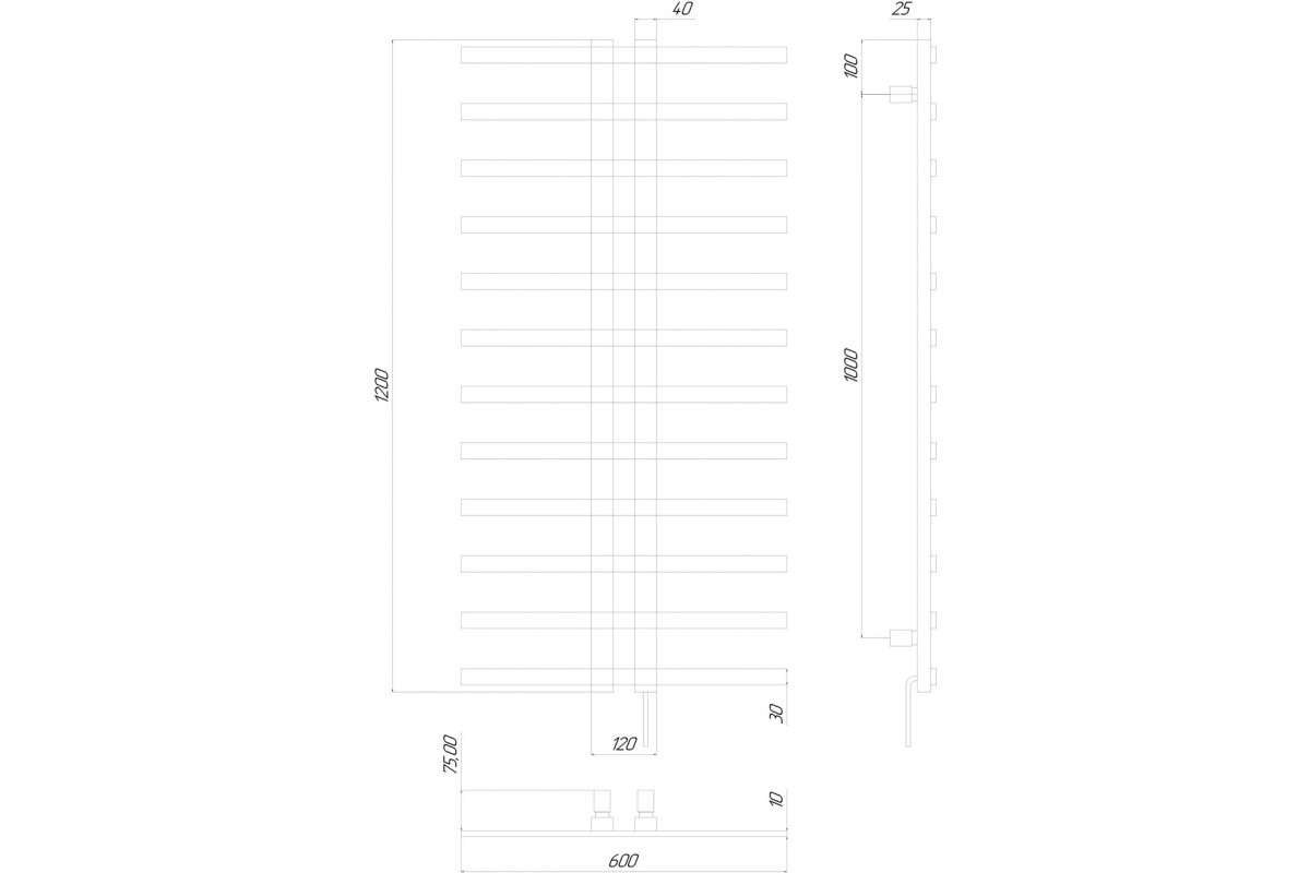 Полотенцесушитель KOSSER Флай 1200х600 EL тайм. чорный