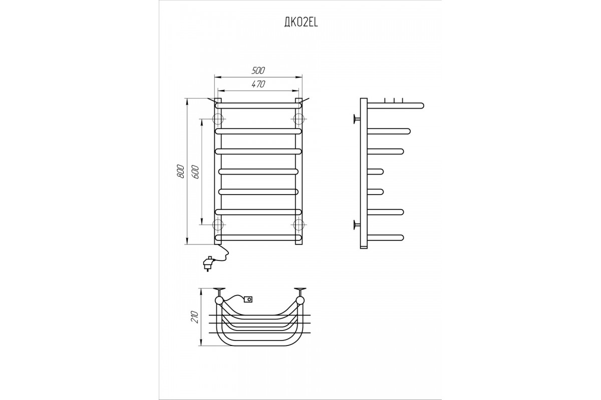 Діаметр: стійка Ø30, товщина 1.5 мм; перемичка Ø20, товщина 1.5 мм. Максимальна робоча температура 50-60 °C, Споживча Потужність, 90 Вт.