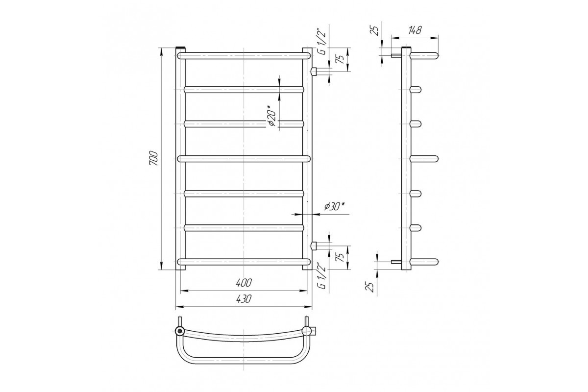 Водяной полотенцесушитель Mario Люкс 700х400 Б/П 1/2" (1.1.2304.02.P)