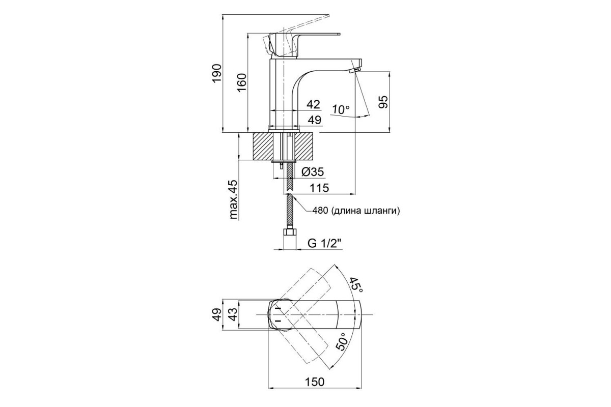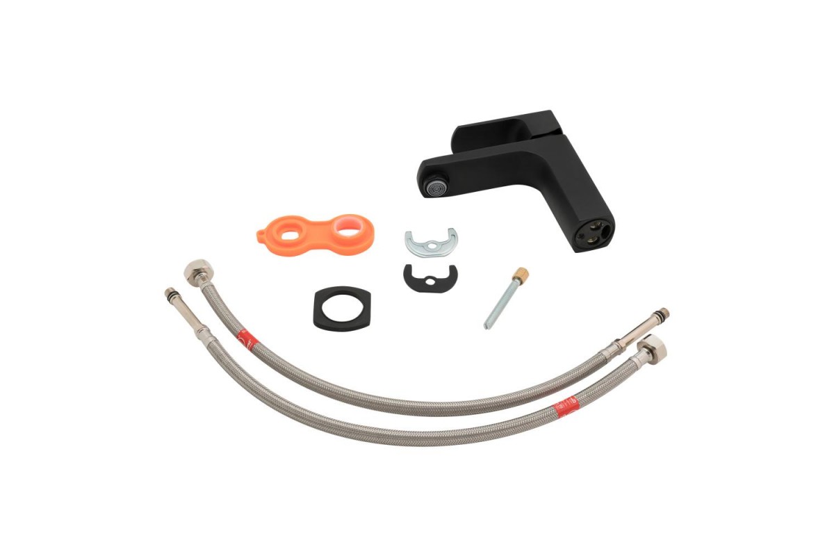Смеситель, ключ для аэратора, гибкая подводка, крепежи
