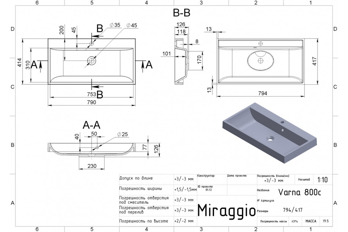 Продукція Miraggio виготовлена згідно з європейськими стандартами та пройшла перевірку на якість за кордоном. Умывальник MIRAGGIO VARNA 800 матовый с литого мрамора mrg_944275952-02 виготовляється з литого мармуру, за розробленою технологією MIRAMARBLE. До складу суміші входить мелений мармур та поліефірна смола, а поверхня виробу покривається санітарним гелем Gelcoat ISO NPG. У нас Ви зможете придбати інтер'єрну сантехніку - умивальники: глянсові, матові, пофарбовані по RALL; умивальники: підвісні, накладні, врізні; ванни: глянсові, матові, забарвлені по RALL; ванни: вбудовувані та окремі: душові піддони різної конфігурації та продукцію з отворами та без для вашого будинку. Умивальники; виготовлені із кварцового піску за технологією MIRASTONE. До складу суміші входить тільки кварцовий пісок, смоли та санітарні добавки. Наші умивальники не піддаються дії барвників, не вигоряють на сонці і при правильному догляді прослужать багато років. На всі вироби діє гарантія 10 років на виробничий брак. Вона не поширюється на випадки, коли клієнт знехтував правилами користування та догляду. Ви завжди можете звернутися до нас з питаннями догляду, встановлення та обміняти виріб протягом 90 днів (якщо виріб не був у користуванні та не встановлювався) + ціла упаковка.